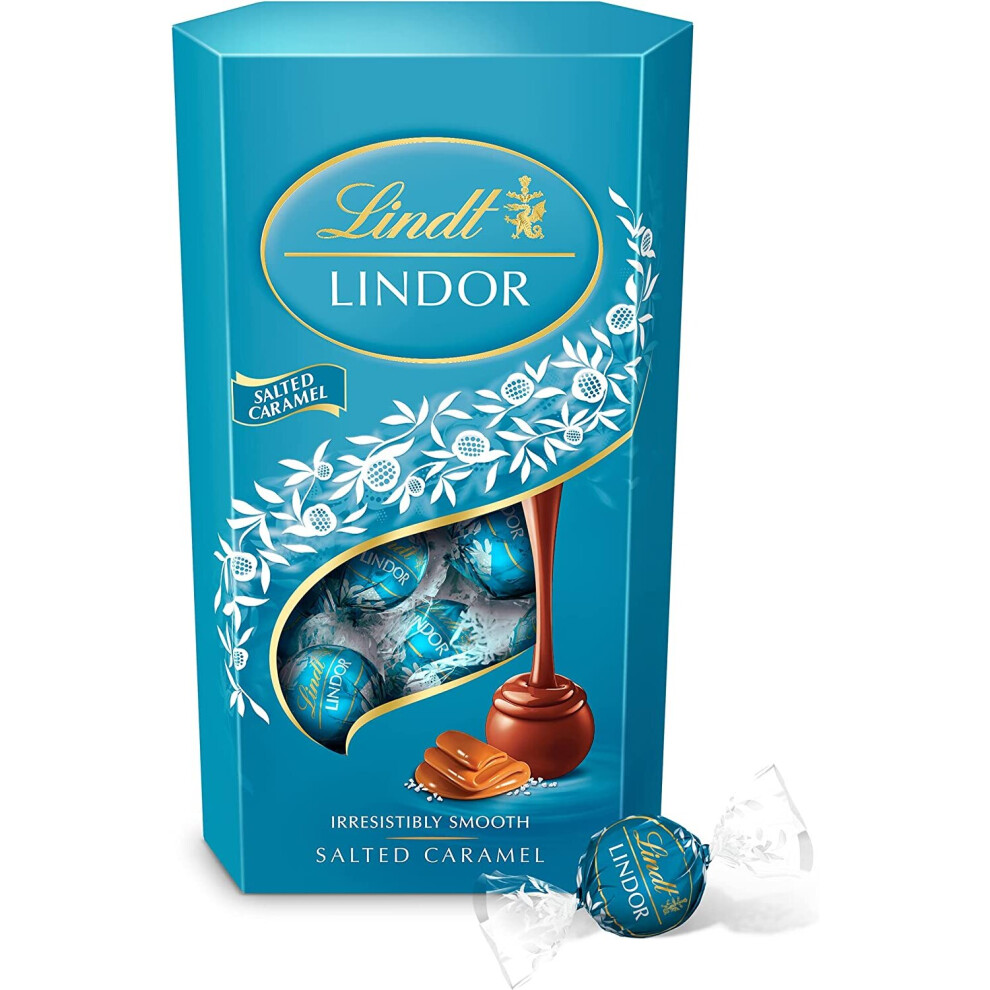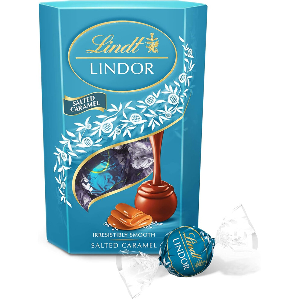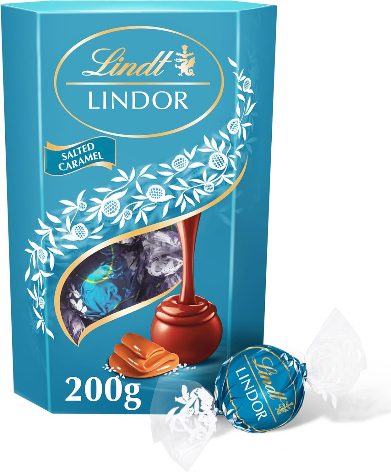 Lindt LINDOR Milk Salted Caramel Chocolate Truffles Box, 200 g | UK