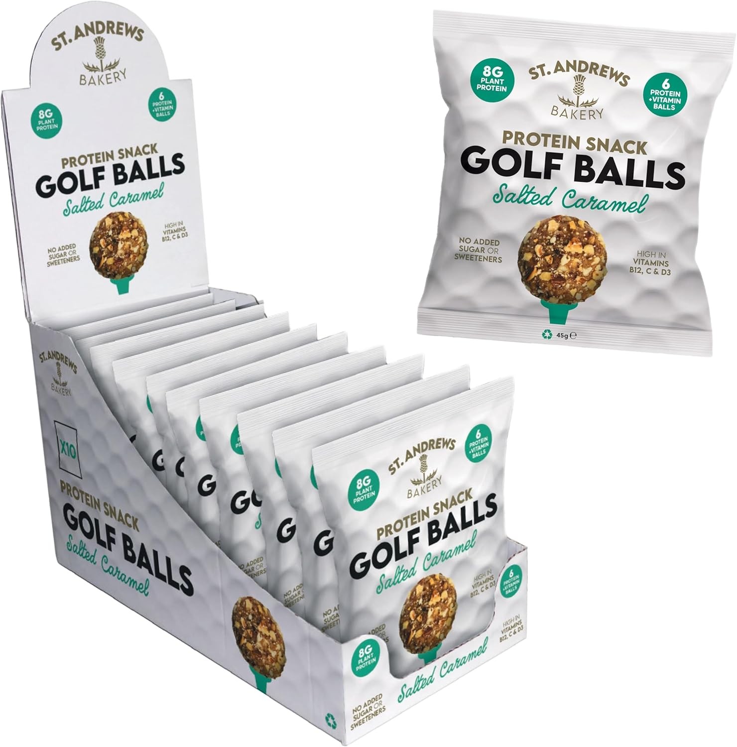 St. Andrews Bakery Golf Balls ? Salted Caramel ? 10 Pack ? Protein Snacks ? Gluten Free ? High Fibre ? Golf Snacks ? 10 x 45g