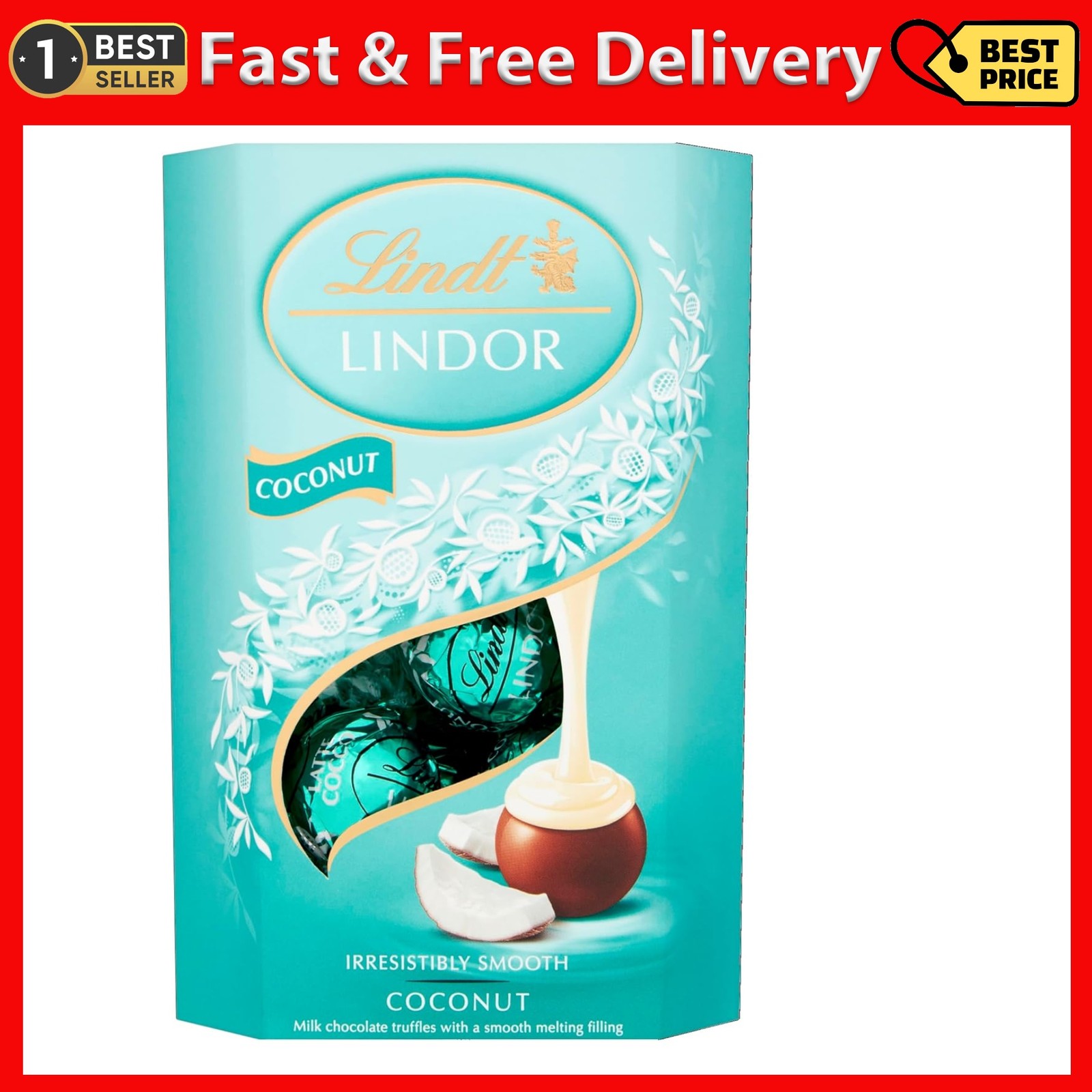 Lindt Lindor Coconut Truffles 200g - Gift Box, Smooth Melting Chocolate
