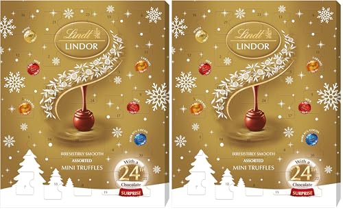 Lindt Lindor Assorted Mini Advent Calendar 2025 – 117g – 24 Mini Chocolate Truffles with a Smooth Melting Filling – Festive Countdown Gift for Him & Her (Pack of 2)