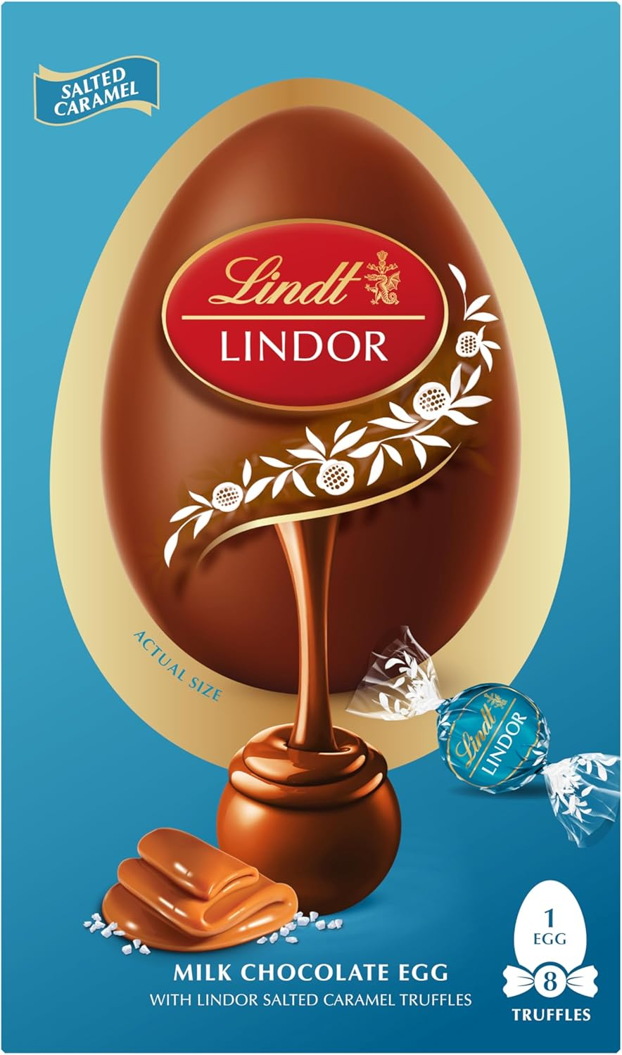 Lindt Lindor Milk Chocolate Easter Egg with Lindor Salted Caramel Truffles 260G