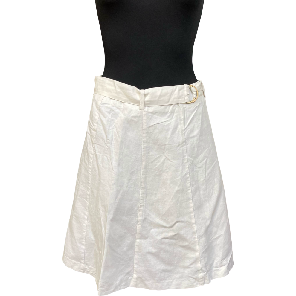 Women's White Midi Skirt - Casual A-Line Linen Blend Skirt for Summer, Everyday Wear, and Elegant Styling in Size 38