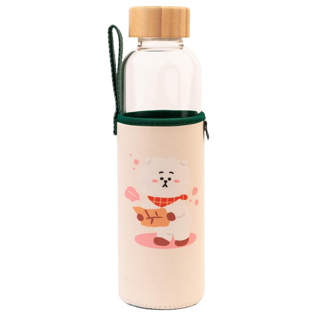 Line Friends BT21 Glass Water Bottle 500ml Reusable RJ Pattern with Case