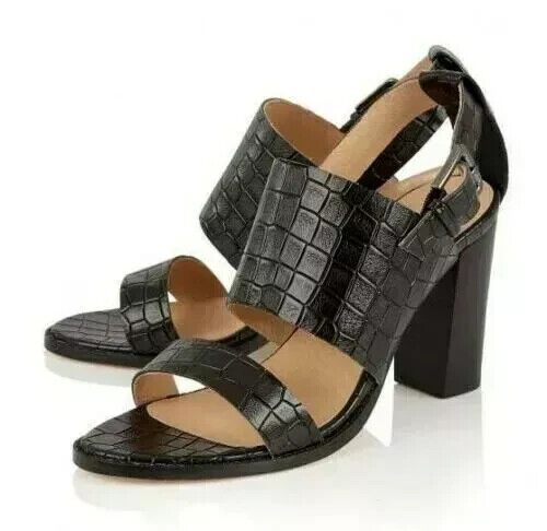 Ravel Glide Womens UK 6 EU 39 Black Croc Print Leather Lined High Heeled Sandals