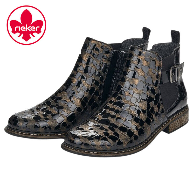 Rieker Womens Chelsea Boots Croc Black Patent Velour Warm Lined Side Zip - Z4965
