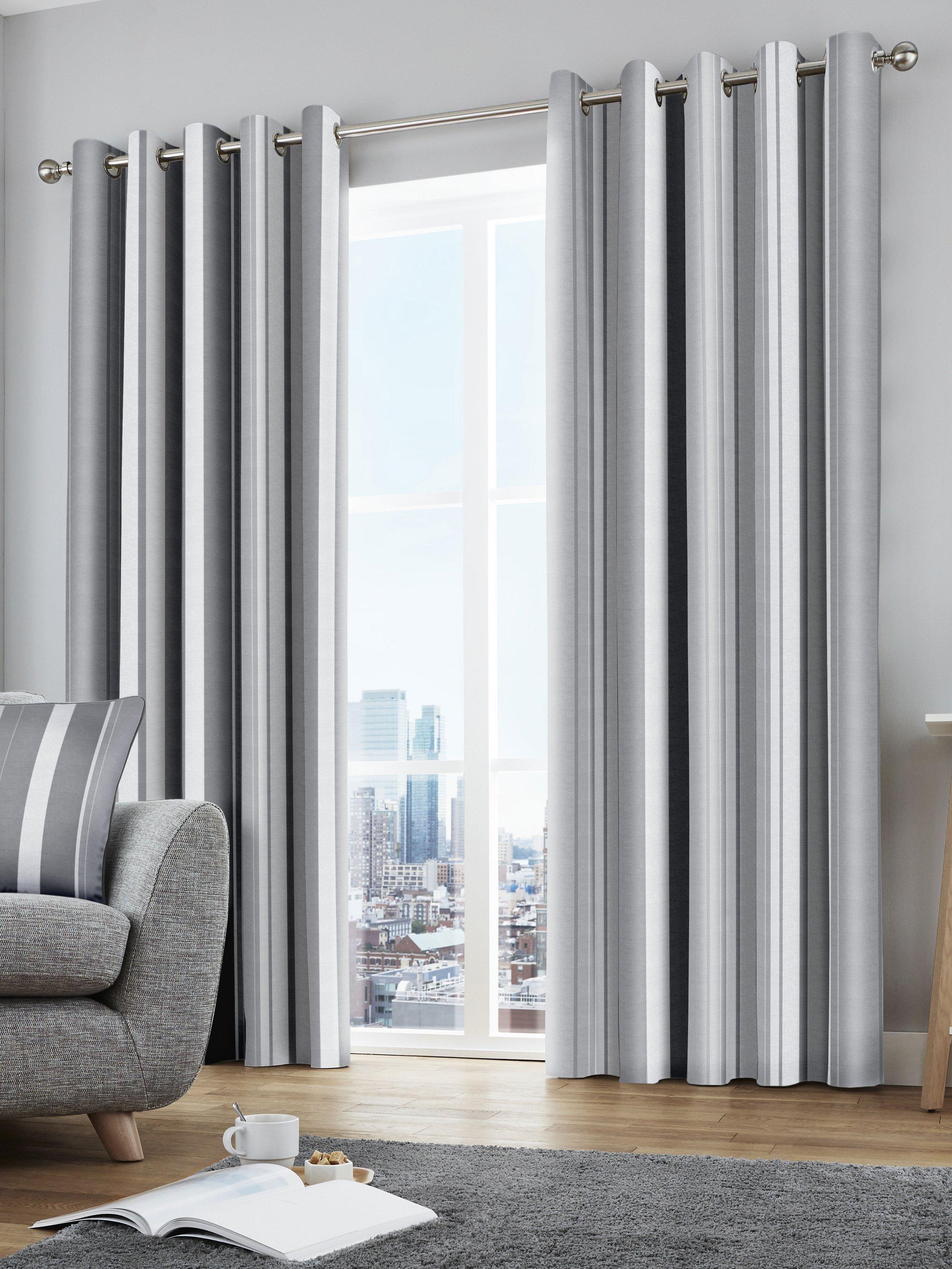 Portfolio Curtains Portfolio Orleans Check Striped Fully Lined Eyelet Ring Top Curtains-Charcoal Grey Wide, Polyester, 46" width x 72" drop