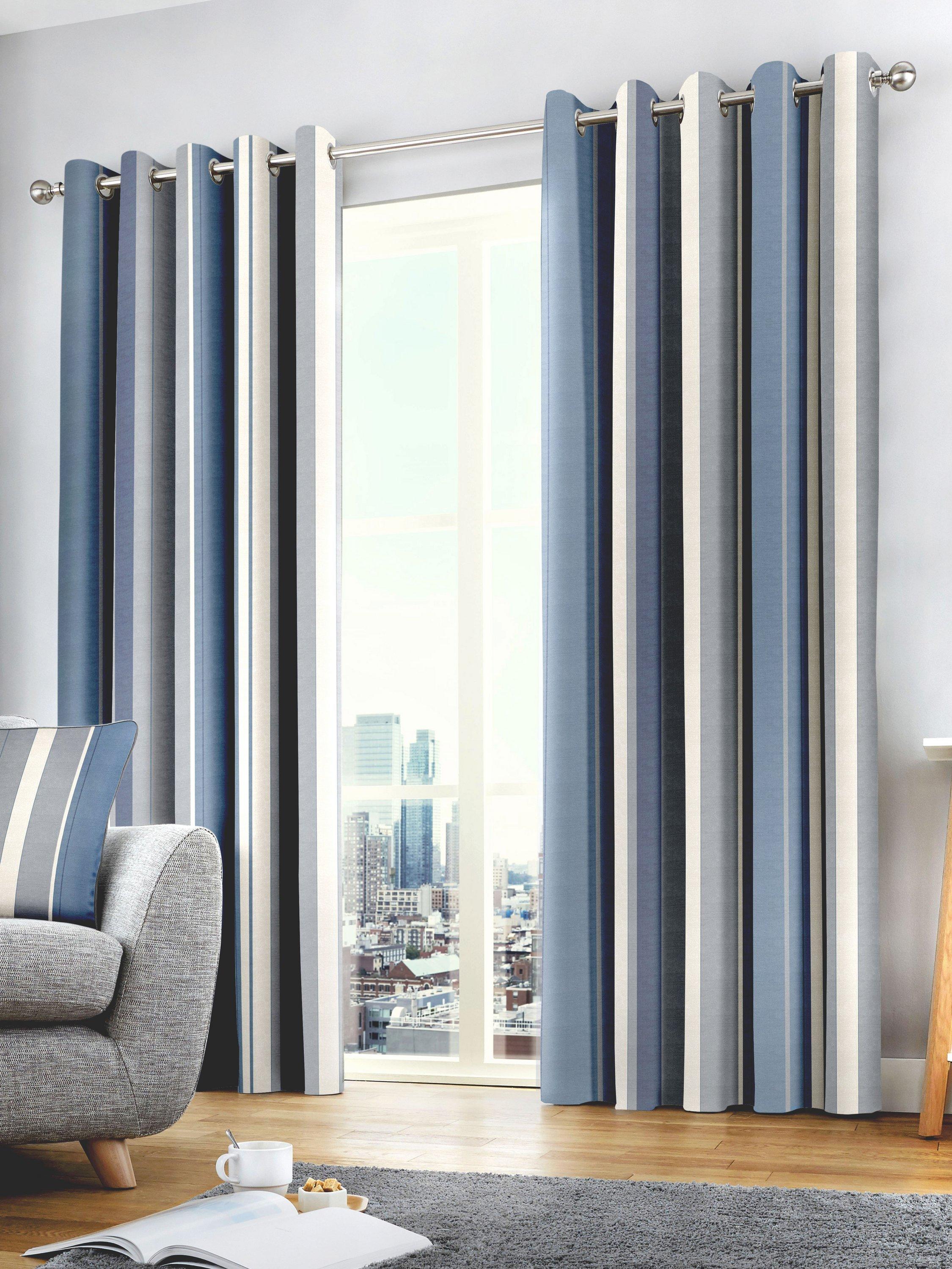 'Whitworth Stripe' Fully Lined 100% Cotton Eyelet Curtains