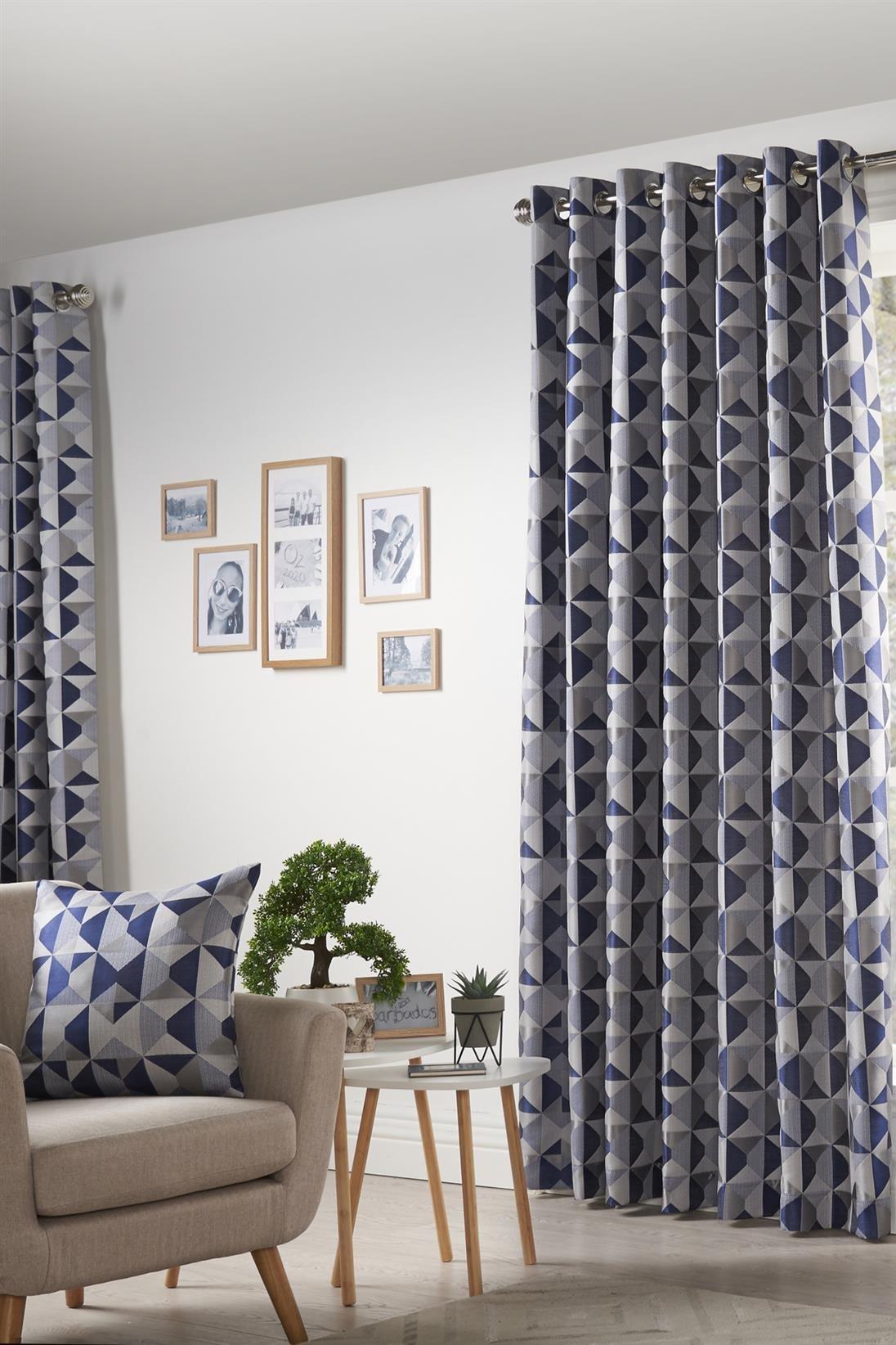 Skandi Geometric Jacquard Fully Lined Eyelet Curtains