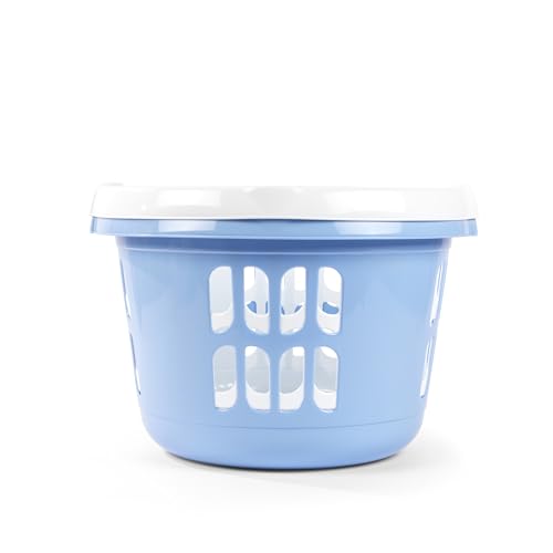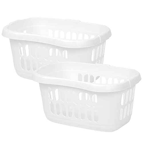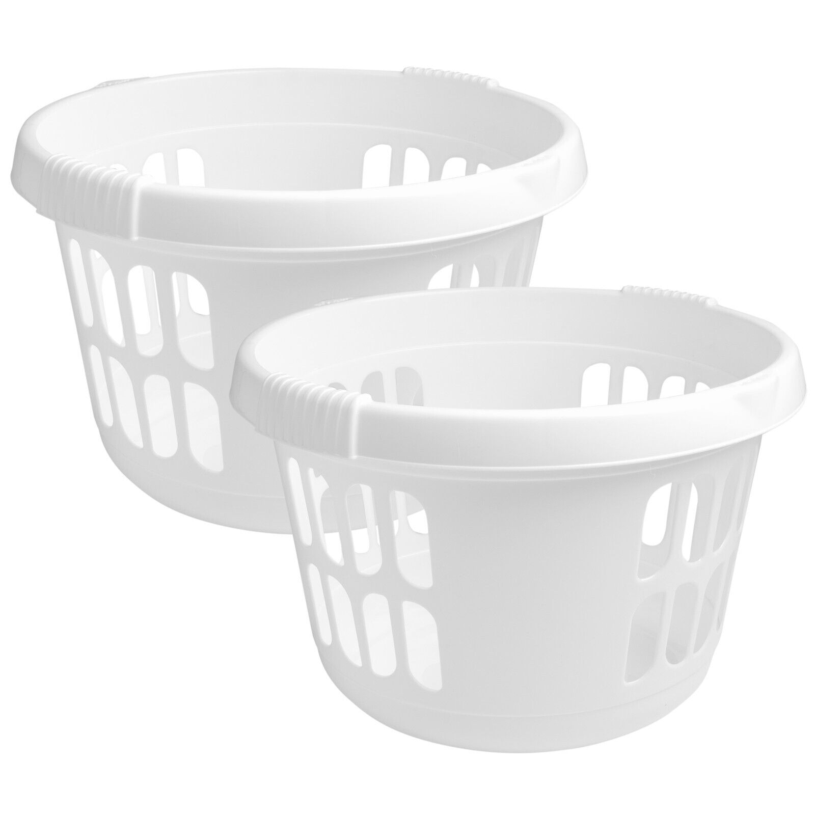 2 x Laundry Baskets Round Ice White 50L Capacity Plastic Clothes Storage Linen