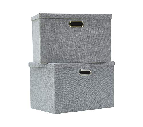 AlphaHome Large Storage Boxes with Lids [2 Pack], Foldable Linen Fabric Storage Baskets for Organising Clothes and Toys(Glaucous Grey, 39x27x25cm)