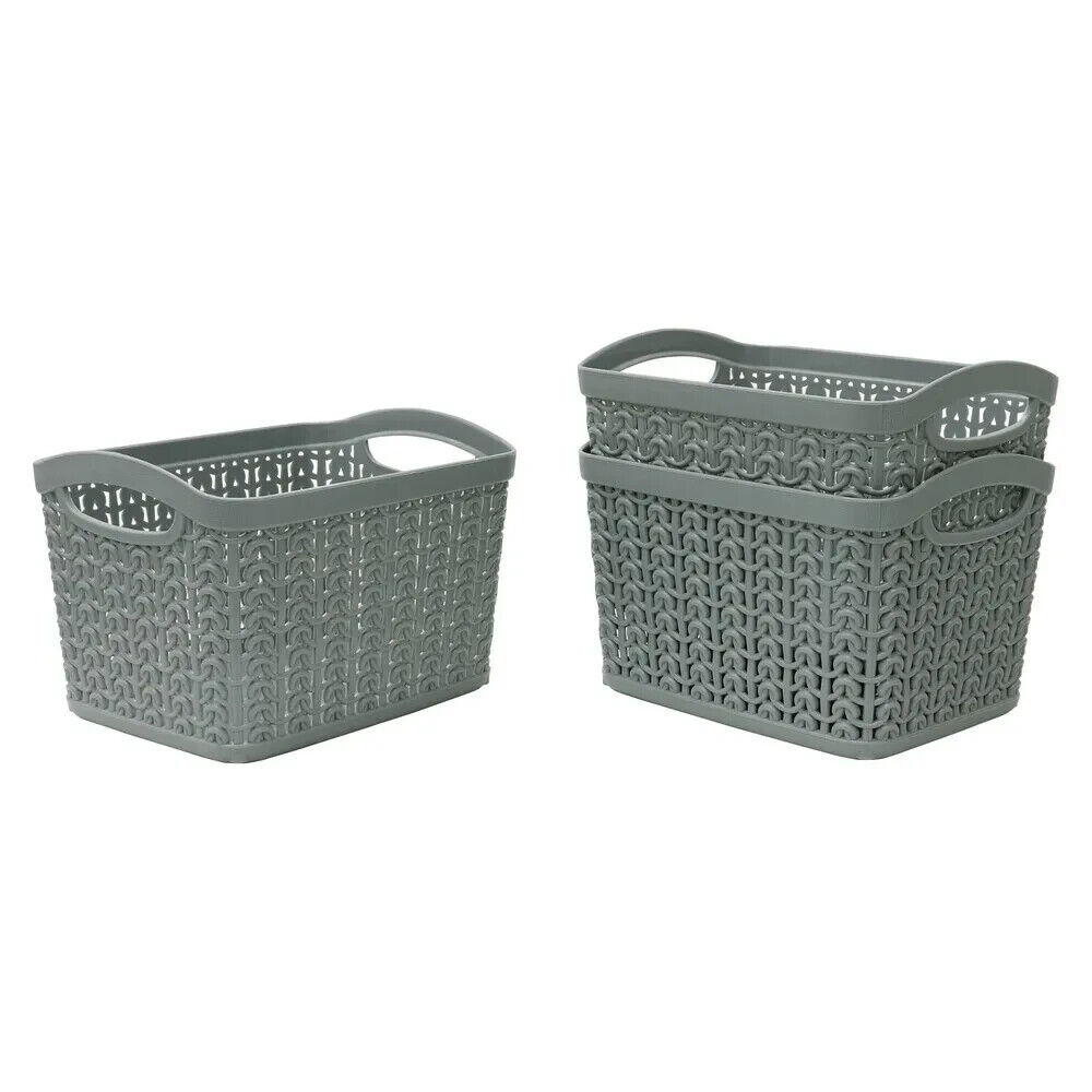JVL Modern Knit Design Loop Plastic Linen Storage Baskets, Grey