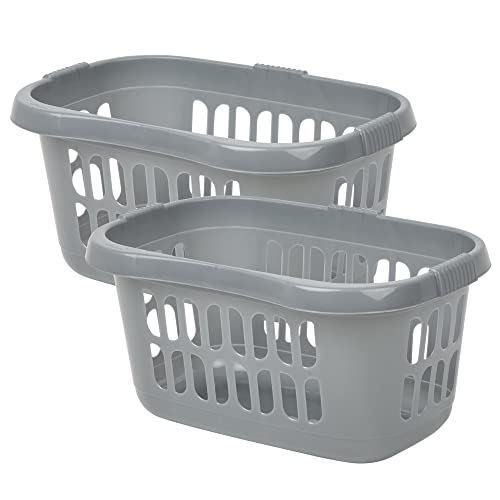 2 x Hipster Plastic Laundry Basket Washing Clothes Linen Storage Baskets -Silver