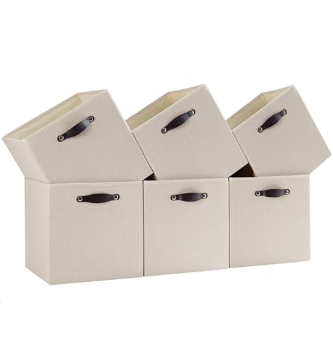 FABINADO 260g/㎡ Fabric Storage Cube Boxes, Linen Storage Baskets for 28x28 cm Cube Storage Shelving Unit, Bookcase, Closet & Wardrobe, 3mm Mid-Layer, 6 Pack (Candlelit Beige, 26.6x26.6x28 cm)