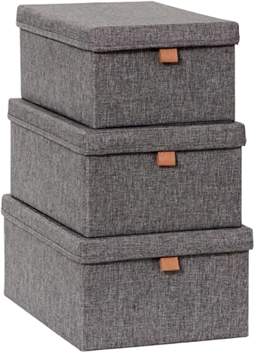 LOVE IT STORE IT Premium Storage Box with Lid Fabric - Set of 3 Linen - Baskets Reinforced with Cardboard - Grey - Various Sizes