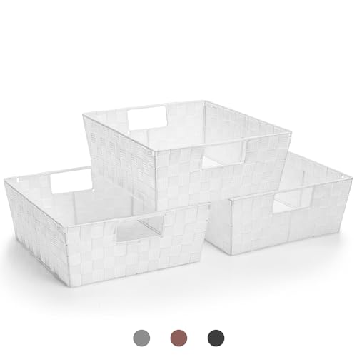 Sorbus Set of 3 Large Storage Baskets for Organizing, Mesh Hand-Woven Design, Linen Closet Organizers and Storage, Organizer Storage Baskets for Shelves, Organizers and Storage (White)