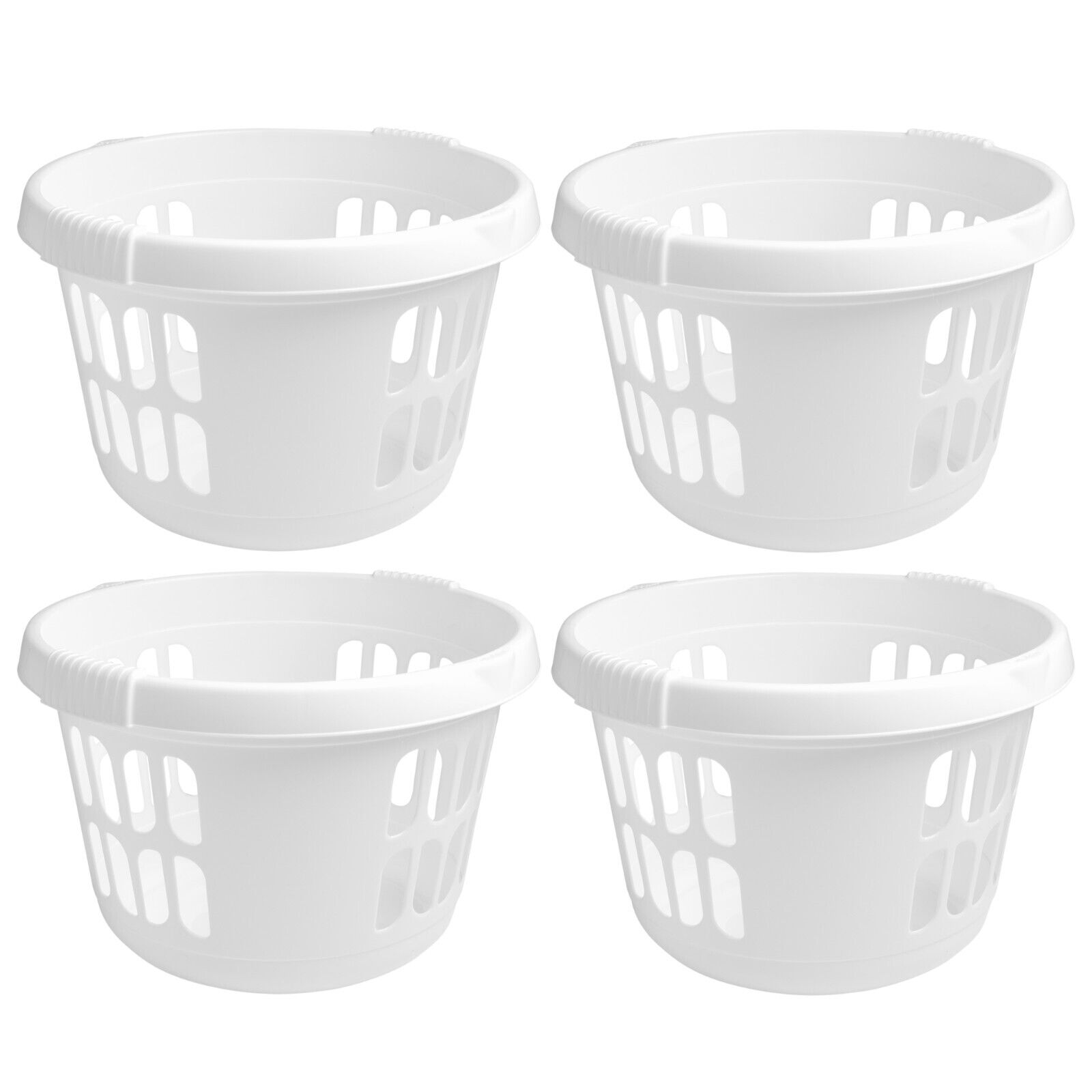 4 x 50L Round Laundry Baskets Ice White Plastic Washing Up Clothes Linen Storage