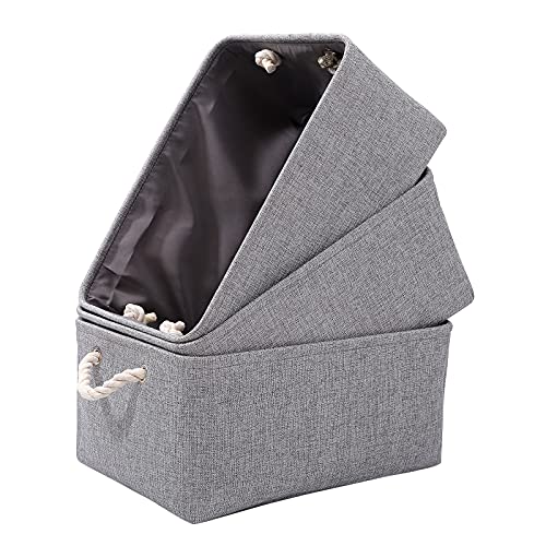 PWVMWM Small Grey Storage Box with Handles, 3 Pcs Thicken Canvas Storage Boxes, Wardrobe Storage Baskets, Collapsible Linen Storage Box for Toys, Clothes and Other Sundries (Grey, 31x21x16cm)