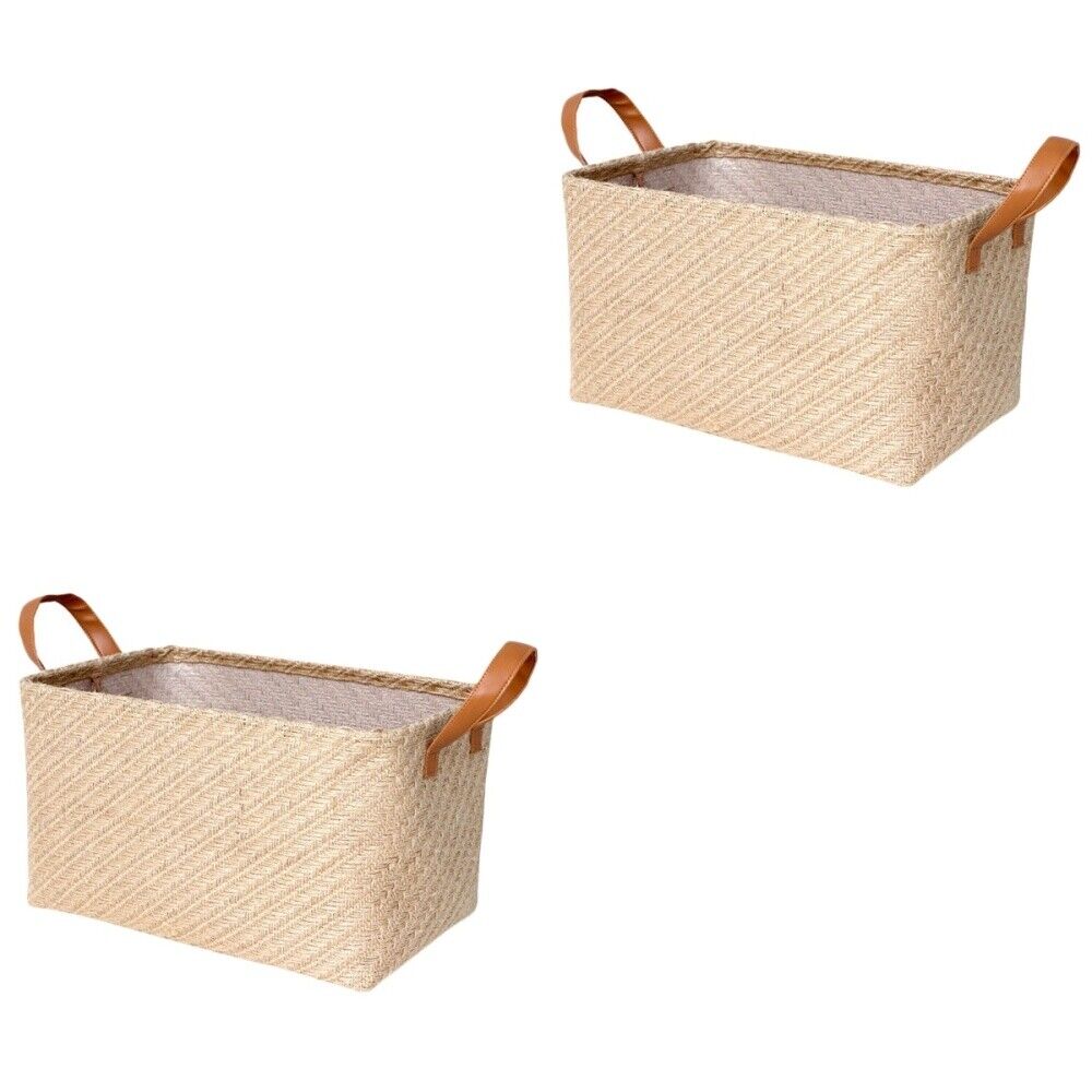 Set of 2 Baskets Tall Woven Linen Storage Box Neutral Color Baby