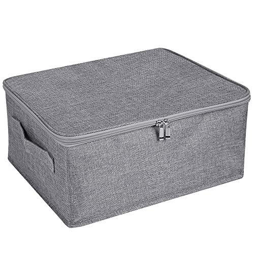 ANMINY Storage Bins with Zipper Lid Storage Boxes with Handles PP Plastic Board Foldable Lidded Cotton Linen Fabric Home Cubes Baskets Closet Clothes Toys Organizer Containers - Gray, Small Size