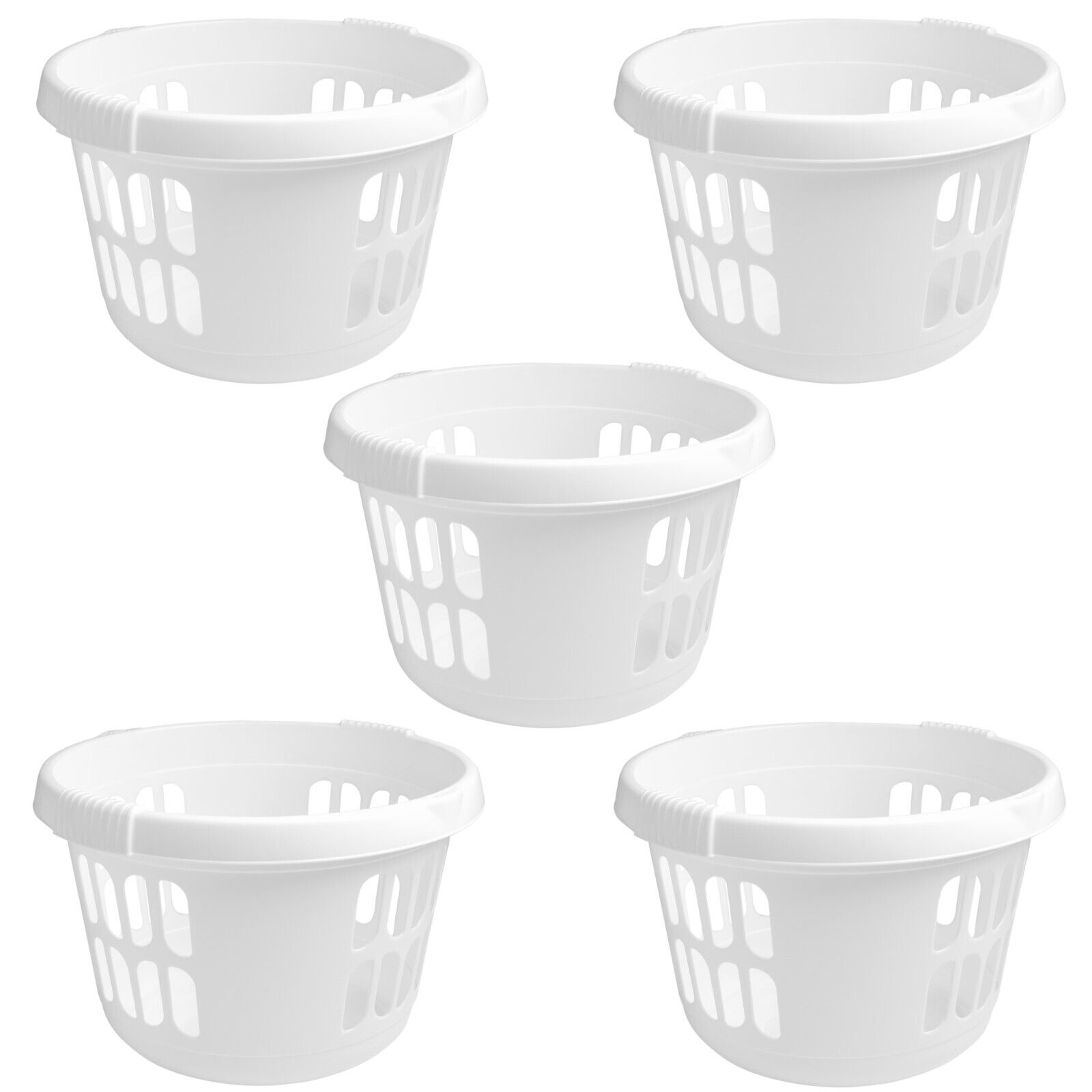 5 x 50L Round Laundry Baskets Plastic Washing Up Clothes Linen Storage Ice White