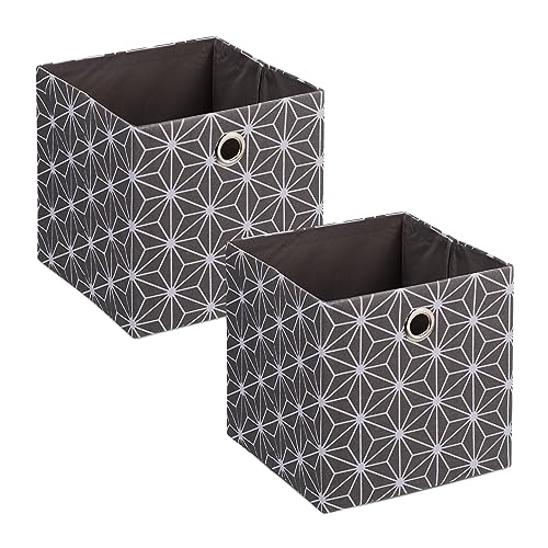 Relaxdays 2x Fabric Storage Box, Geometric Pattern, HWD: 30.5 x 30 x 30 cm, Foldable Shelf Baskets, Grey/White, Linen
