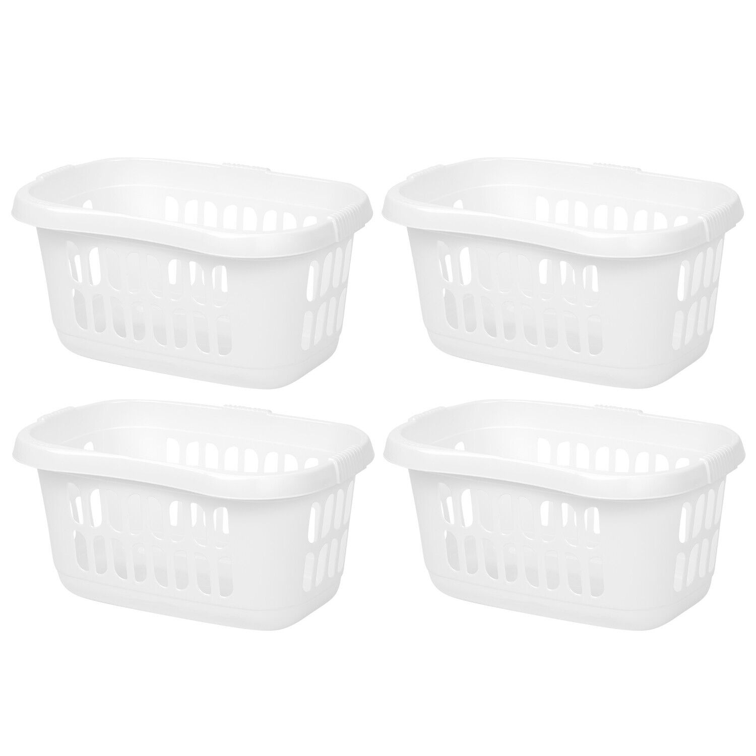 (Set of 4) White Hipster Plastic Laundry Baskets Washing Clothes Linen Storage