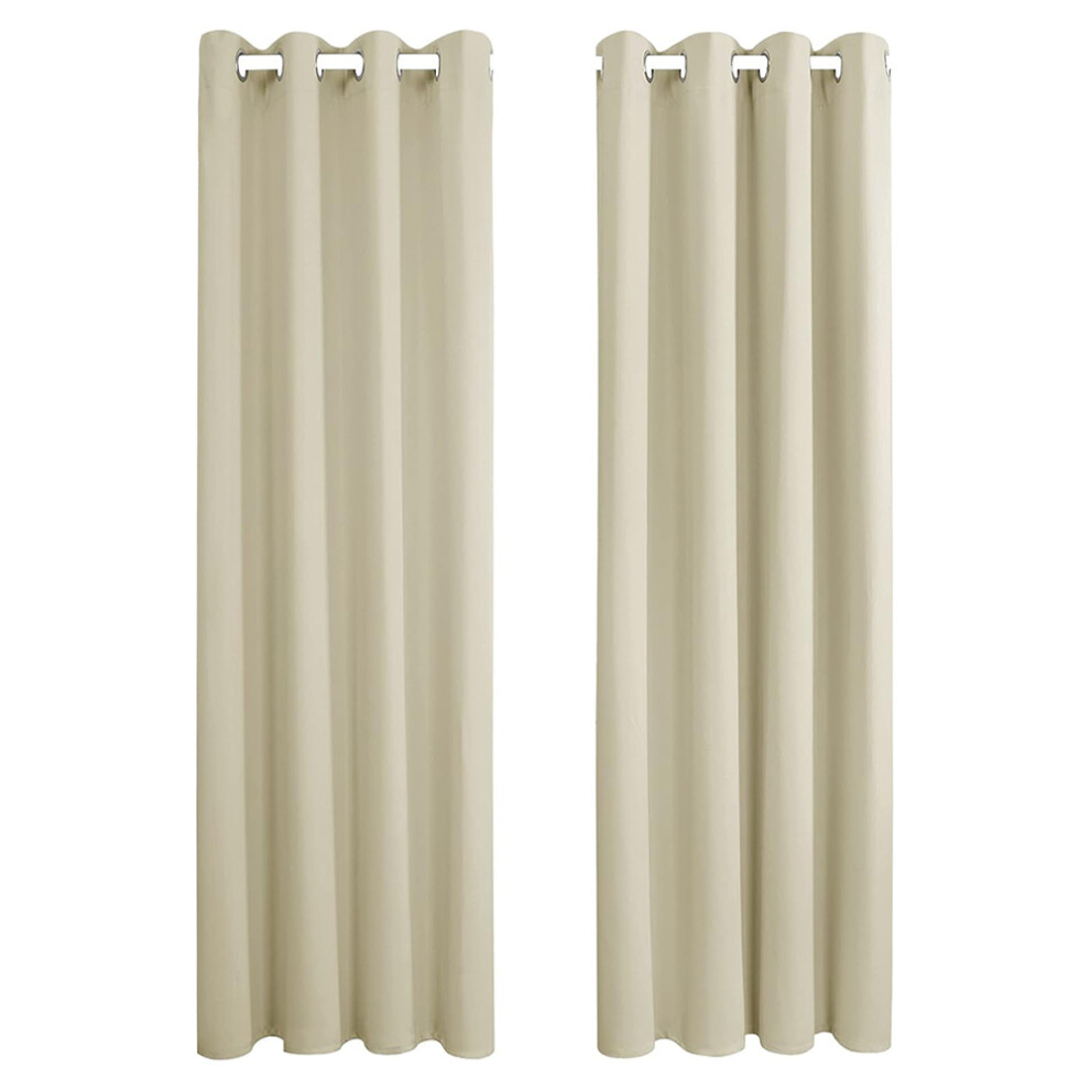 Deconovo Double-sided Faux Linen Look Total Blackout Eyelet Curtains Noise Reduction Drapes Thermal Insulated Curtains for Small Windows, W66 x L54 Inch, Beige, One Pair