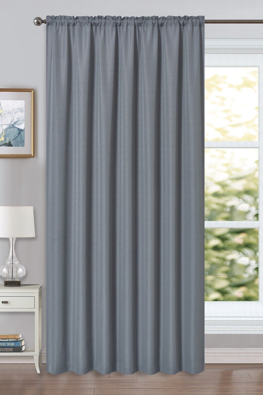 Melodieux 1 Panel Window Curtains with Tie Backs - Semi Blackout Cotton Blend Curtains, Eyelet Thermal Insulated Door Curtain, Linen Look, Lightweight Drapes for Livingroom, Bedroom (46 x 54 Inch)