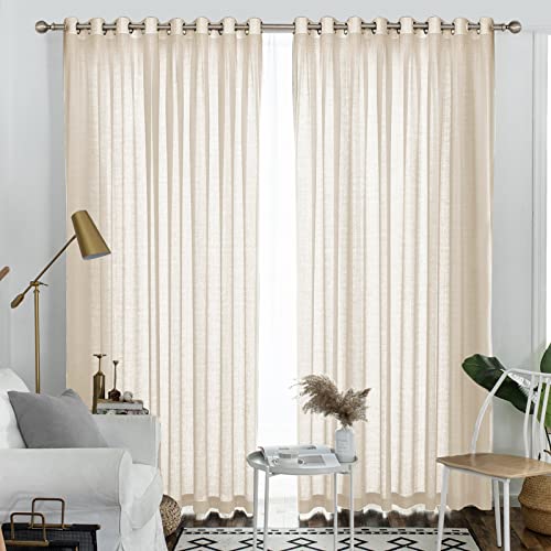 Melodieux Natural Beige Semi Sheer Curtains 108 Inches Long for Living Room, Bedroom Extra Long Linen Look Rustic Grommet Voile Drapes, 52 by 108 Inch (2 Panels)