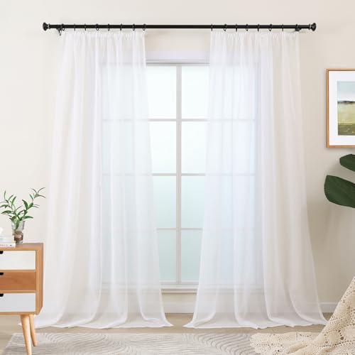 KOUFALL 108 Inch Long White Sheer Curtains,Rod Pocket Linen Look 9 FT High Ceiling Large Window Curtain Drapes 108 Inches Long 2 Panels