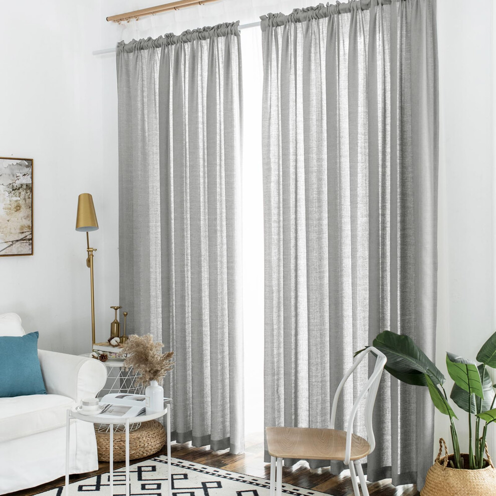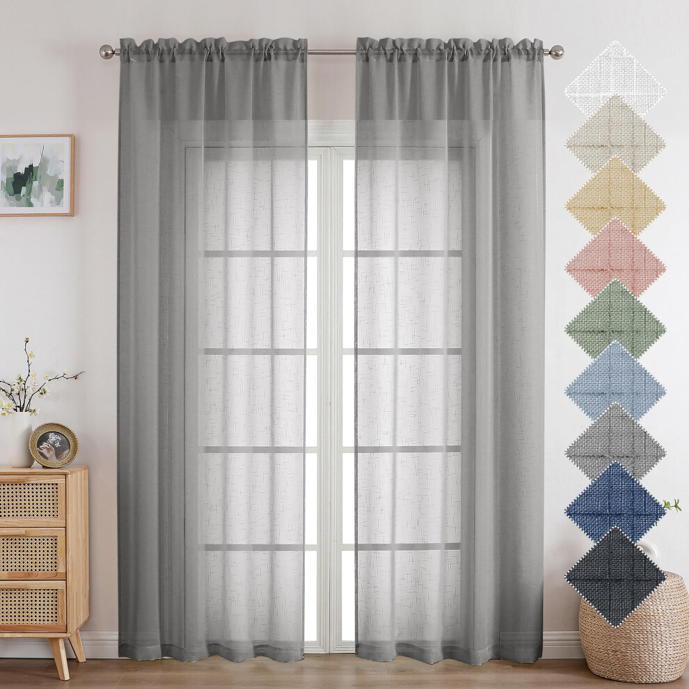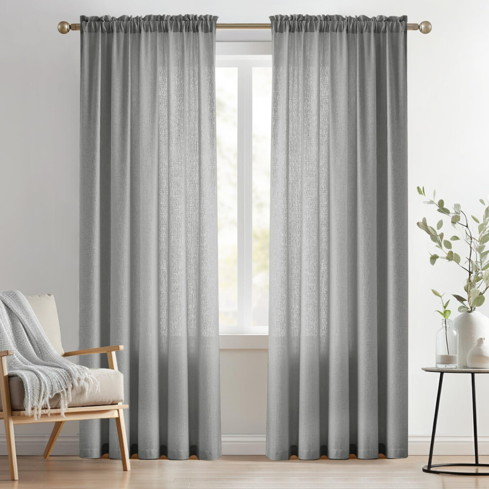 koufall Gray Linen Look Curtains 96 ines Long Set of 2 Rod Pocket Elegant Woven Textured Voile Sheer Drapes for Bedroom Living Room Patio Sliding Door