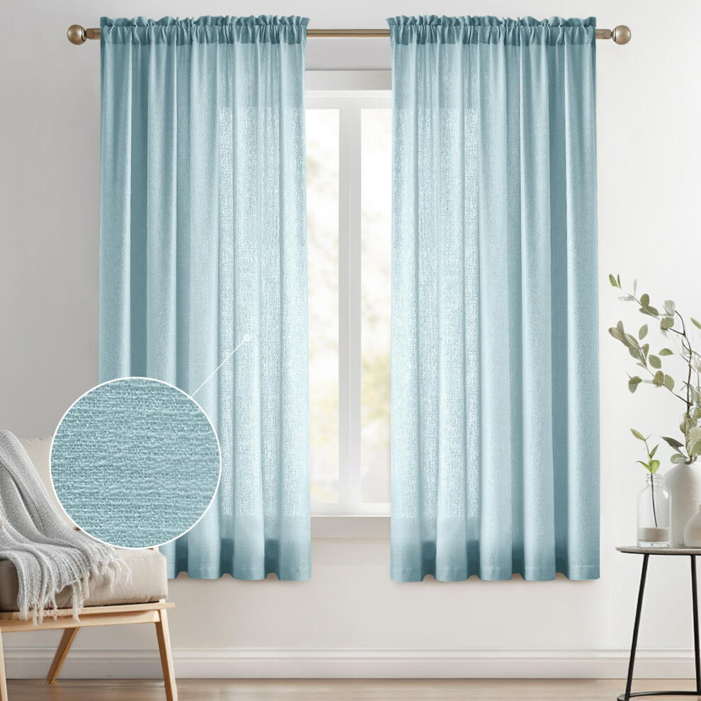 Melodieux Dusty Blue Semi Sheer Curtains 84 Inches Long for Living Room Bedroom Linen Look Rod Pocket Window Privacy Sheer Drapes 52"""" W x