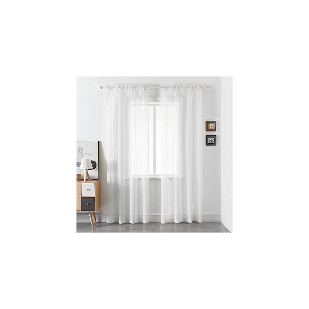Melodieux White Semi Sheer Curtains 84 Inches Long for Living Room - Linen Look Bedroom Rod Pocket Voile Drapes, 52 by 84 Inch (2 Panels)