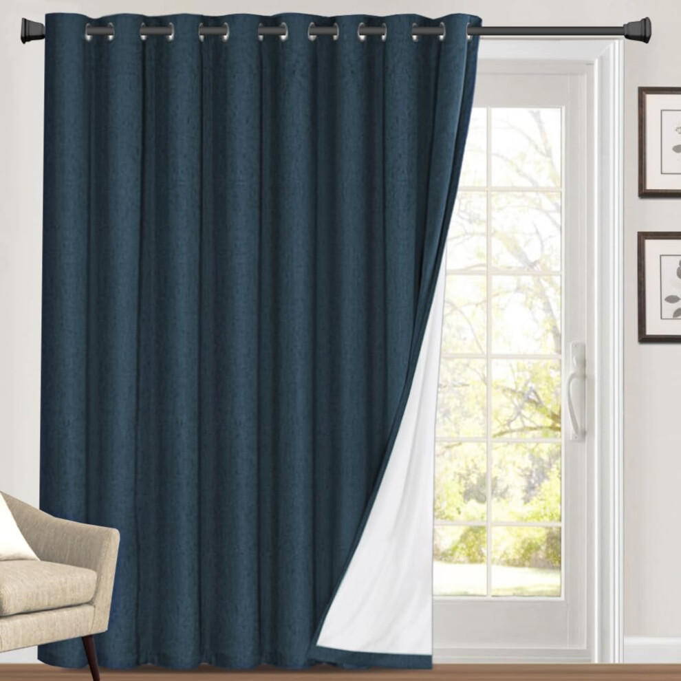 PrinceDeco 100% Blackout Linen Look Patio Door Curtain 84 Inches Long Extra Wide Thermal Insulated Grommet Curtain Drapes for Living Room/Sliding Glas