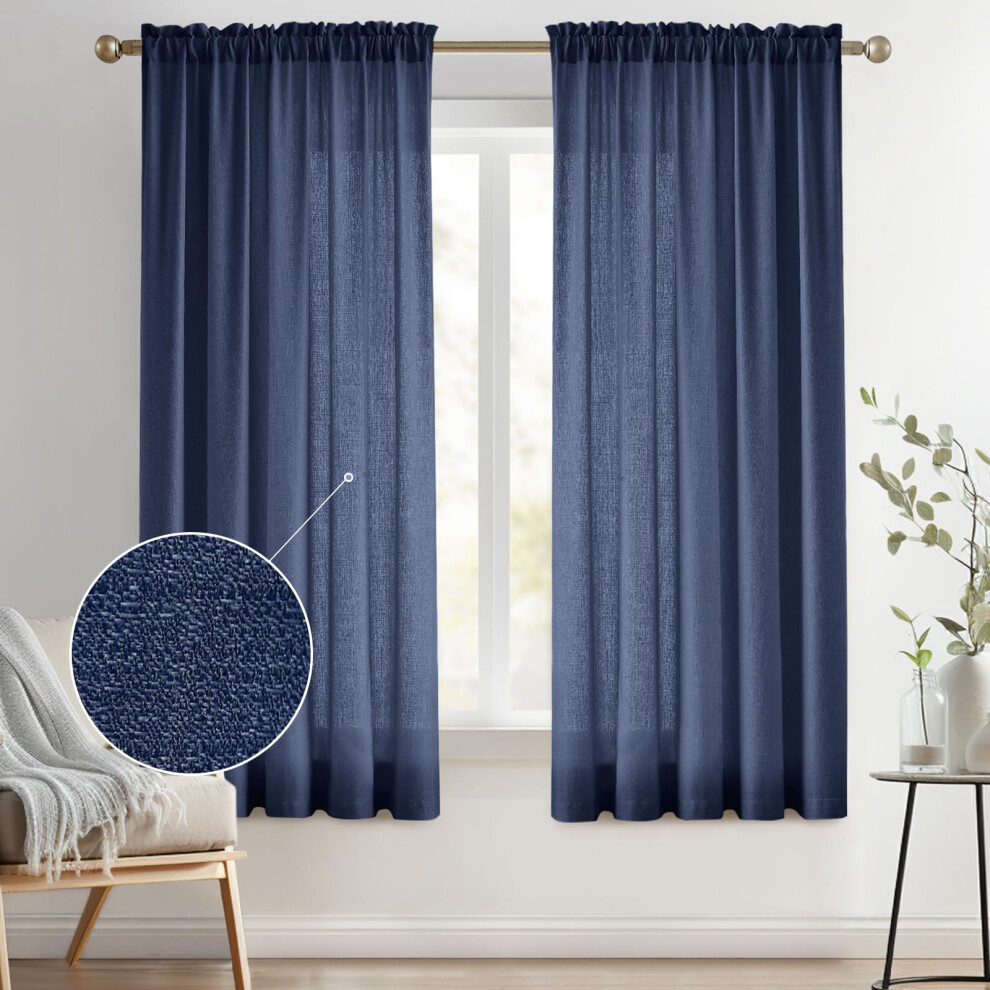 Melodieux Navy Semi Sheer Curtains 72 Inches Long for Bedroom Living Room Linen Look Privacy Window Rod Pocket Sheer Drapes 52"" W x 72""