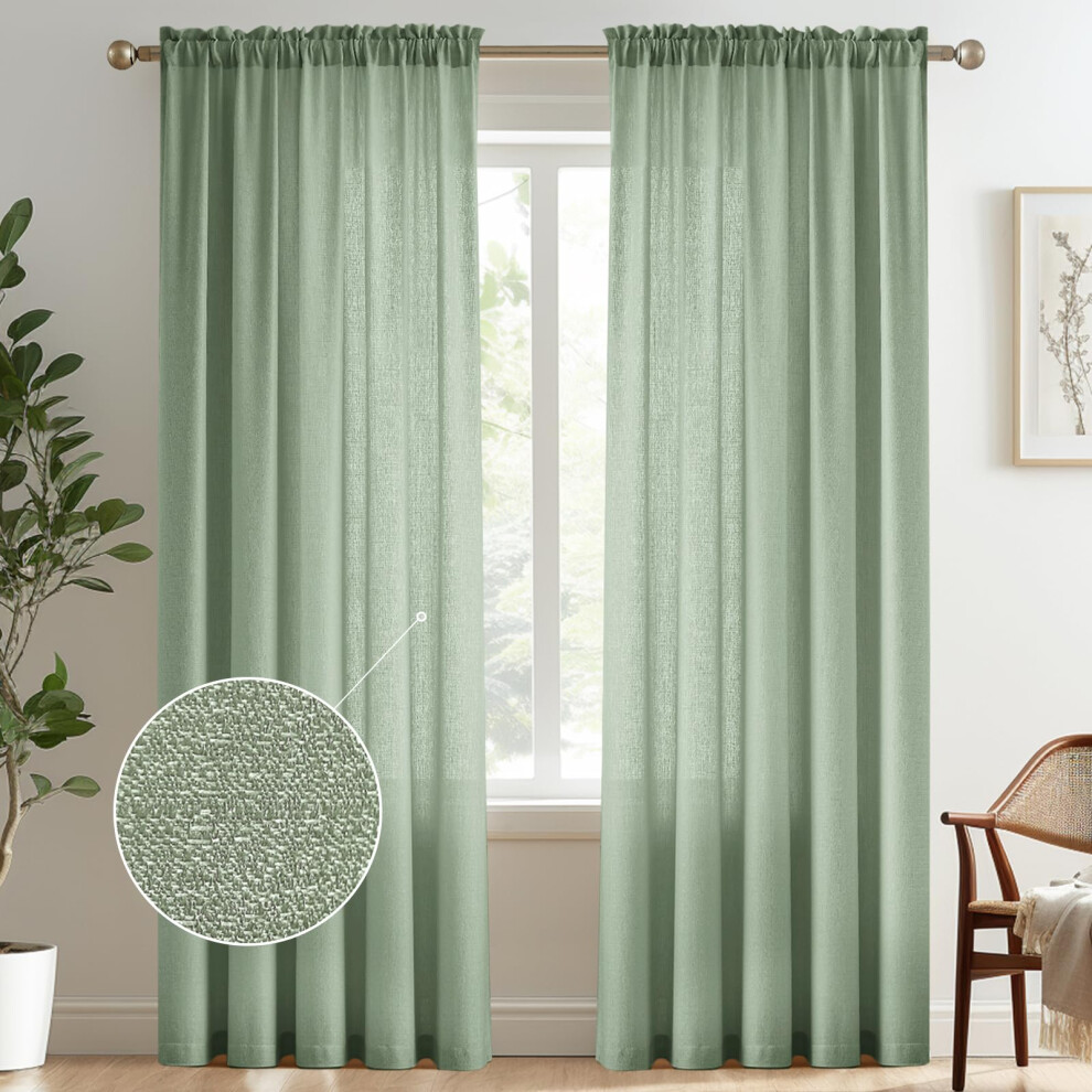 Melodieux Sage Green Semi Sheer Curtains 108 Inches Long for Living Room Bedroom Extra Long Linen Look Rustic Rod Pocket Sheer Drapes 52""""