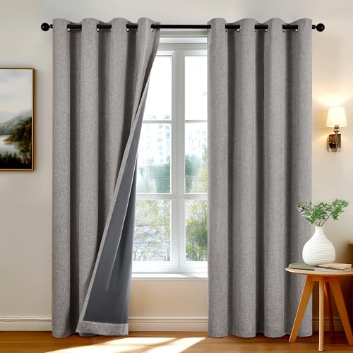 Blackout Curtains, Grommet Top Linen-Look Drapes for Bedroom & Living Room, Filter Sunlight while Maintaining Soft Lighting, Privacy Protection & Nois
