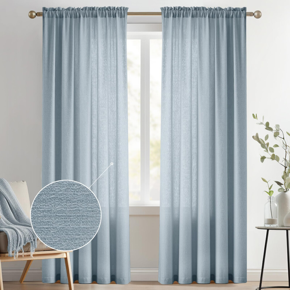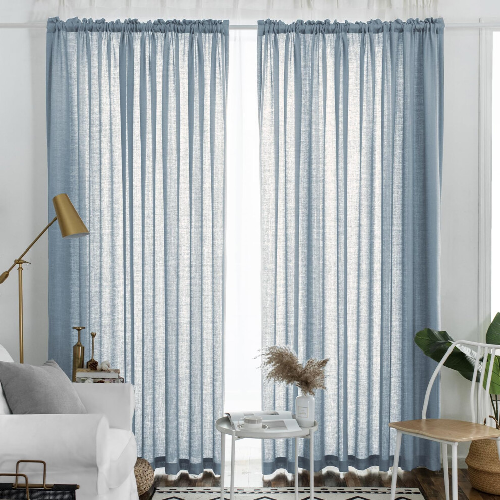 Melodieux Dusty Blue Semi Sheer Curtains 108 Inches Long for Living Room Bedroom Extra Long Linen Look Rustic Rod Pocket Sheer Drapes 52""""