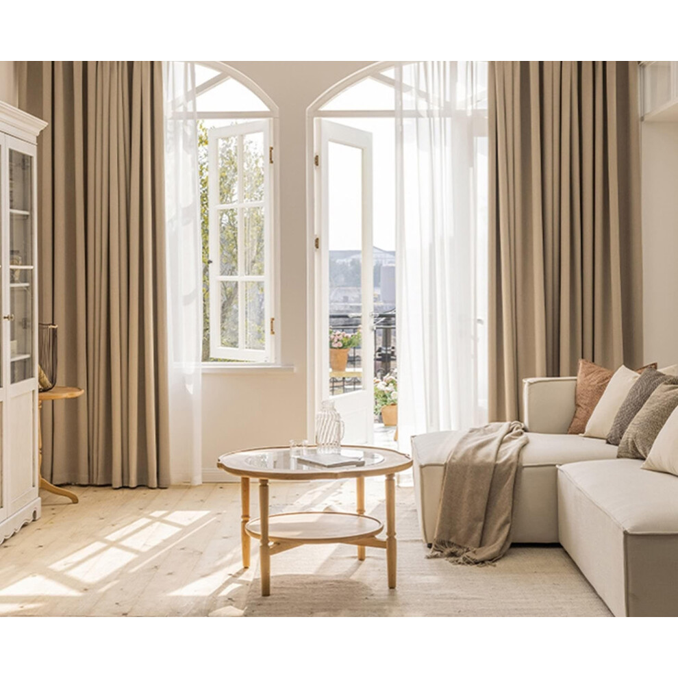 2pcs Set Living Room Curtains Vintage Chenille Eyelet Window Drapes Linen Look Solid Color 96x138cm Light Brown