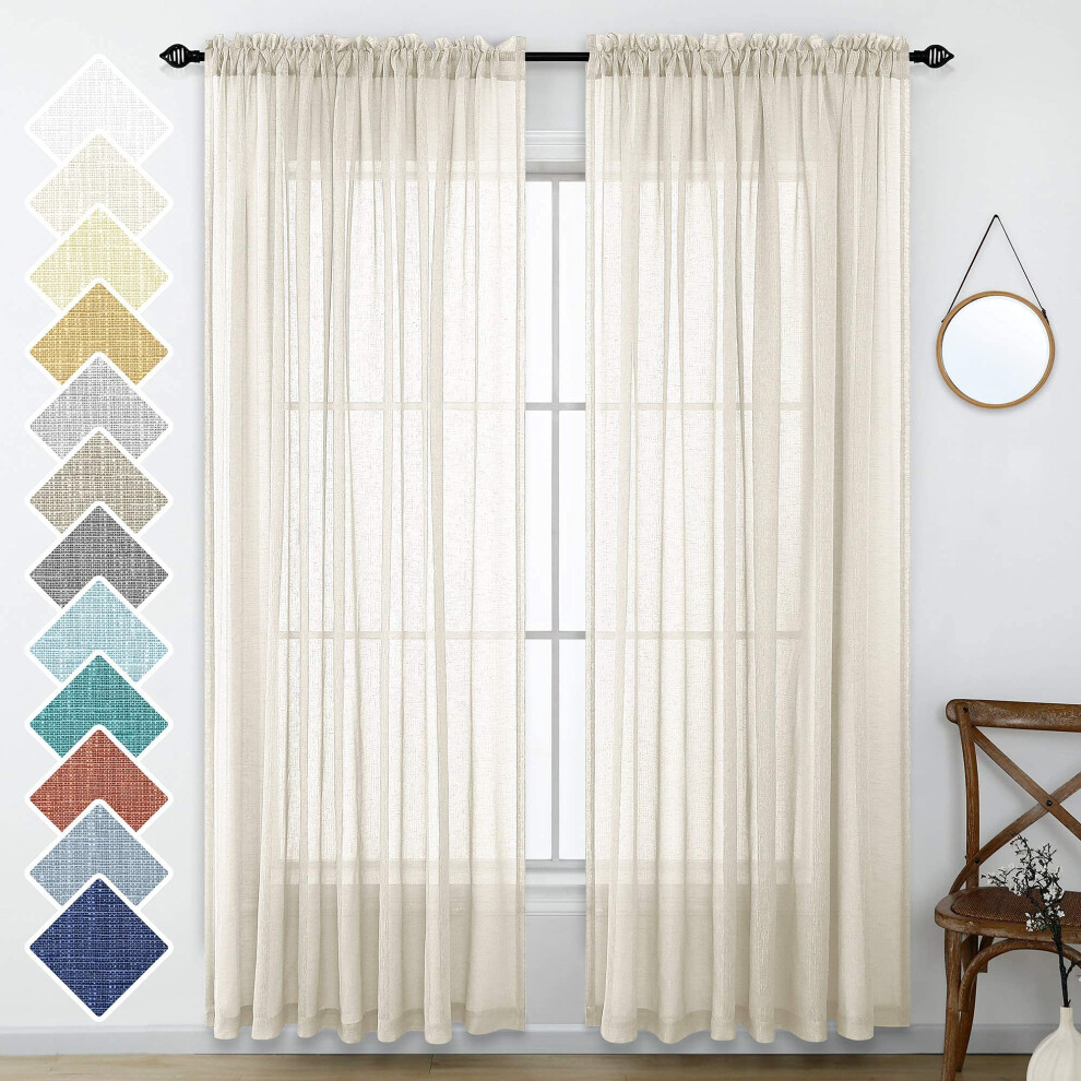 LAMIT - Linen Semi Sheer Curtains Natural Look Light Filtering Back Tab Rod Pocket Window Drapes for Bedroom 2 Panels Set, 52 x 72 Inch, Cream Ivory