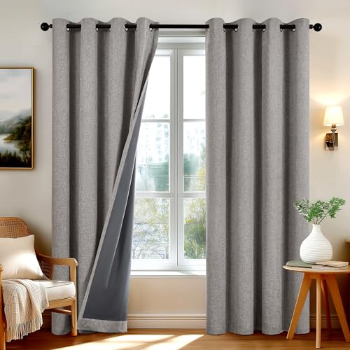 Deconovo 100% Blackout Curtains Double-sided Linen Look Dark Grey Curtains Energy Saving Thermal Insulated Drapes for Children's room, W52 x L63 Inch, Dark Grey, One Pair