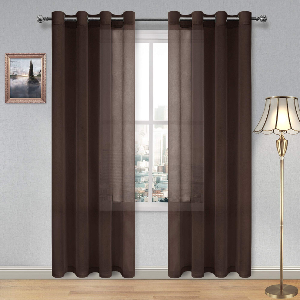 DWcN Brown Sheer curtains for Living Room Bedroom - Faux Linen Look Voile Drapes grommet Top Window curtain Panel 52 x 84 Inch Long Set of 2 Panels