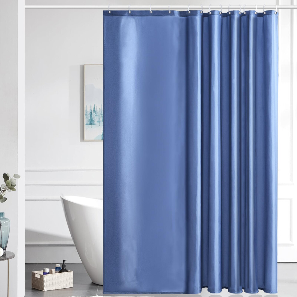 Furlinic Shower Curtain Mould Proof Wetroom Bathroom Polyester Fabric Navy Shower Curtains Liner Waterproof Rustproof Washable Weighted with 16 Hooks Extra Wide 244x200cm 96x78 Inch.
