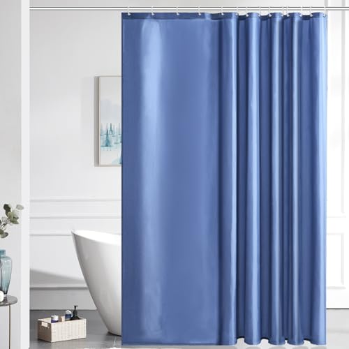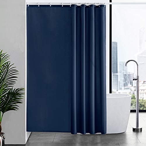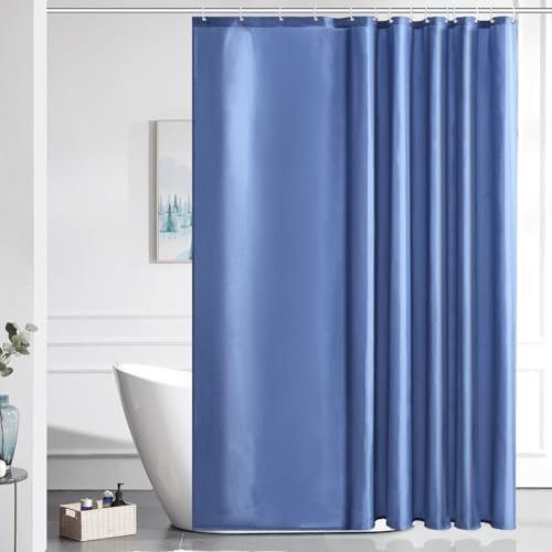 Furlinic Shower Curtain Mould Proof Resistant Wetroom Bathroom Polyester Fabric Navy Blue Shower Curtains Liner Waterproof Rustproof Washable Weighted with 12 Hooks Extra Long 180x220cm 72x86.