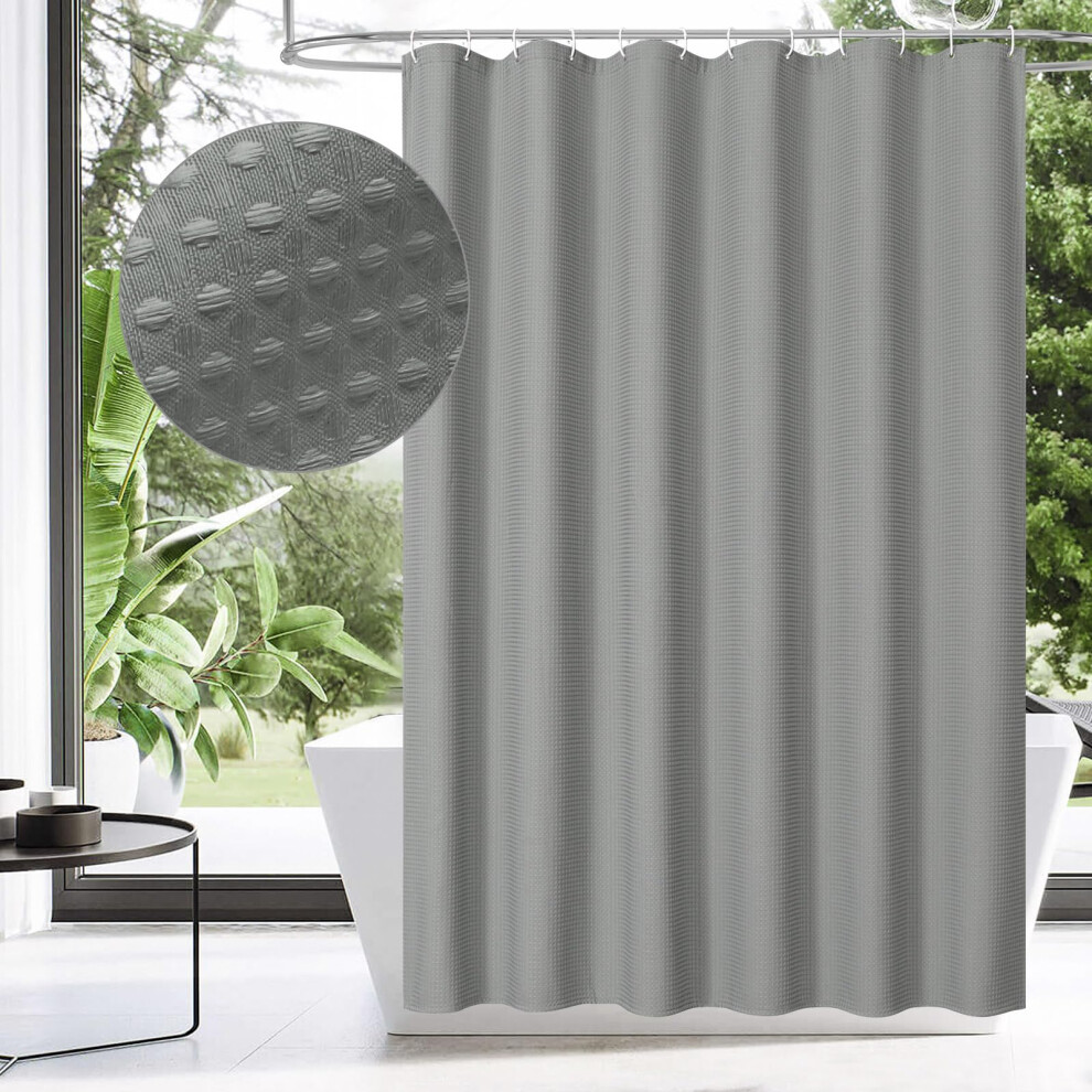 MitoVilla Extra Long Waffle Shower Curtain 72 x 84, Grey Farmhouse Fabric 84 inch Shower Curtain Liner, XL Shower Curtains for Bathroom Decor, Luxury