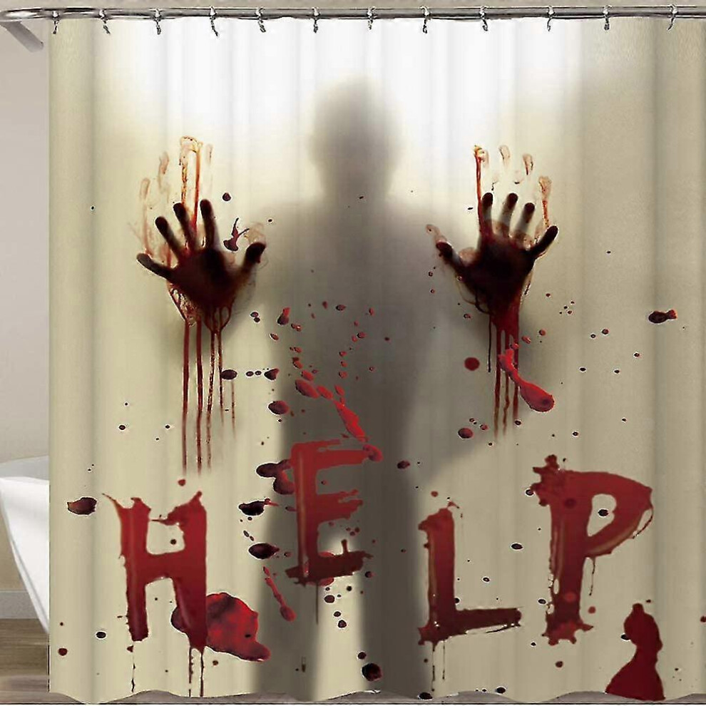 (120x180cm, One size) Bloody Shower Curtain,Halloween Decoration Horror Bloody Handprints, Halloween Decoration Shower Curtain Liner Curtains Help Me