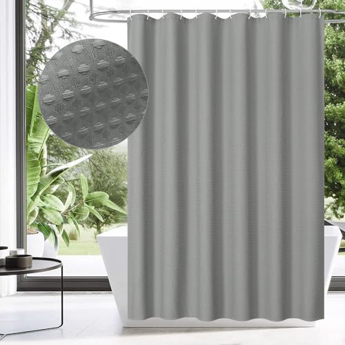 MitoVilla Extra Long Waffle Shower Curtain 72 x 84, Grey Farmhouse Fabric 84 inch Shower Curtain Liner, XL Shower Curtains for Bathroom Decor, Luxury Weighted Shower Curtain 84 inch