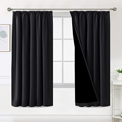 BellaHills 100% Blackout Curtains for Bedroom Thermal Insulated Curtains & Drapes Blackout Curtains Pencil Pleat Curtains for Living Room with Black Liner 2 Panels, 66 x 54 Inch, Black