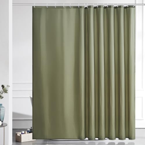 Furlinic Shower Curtain Mould Proof Resistant Wetroom Bathroom Polyester Fabric Sage Green Shower Curtains Liner Waterproof Rustproof Washable Weighted with 16 Hooks Extra Wide 244x200cm 96x78 Inch.