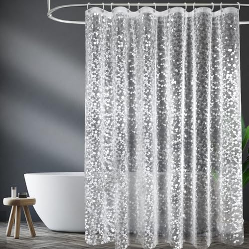 WQHPLMD 72x72 Curtains for Bathroom, Peva Liner Grommets and Hooks Transparent with Teardrop Pattern, 180x180cm Bathtub Shower Curtain